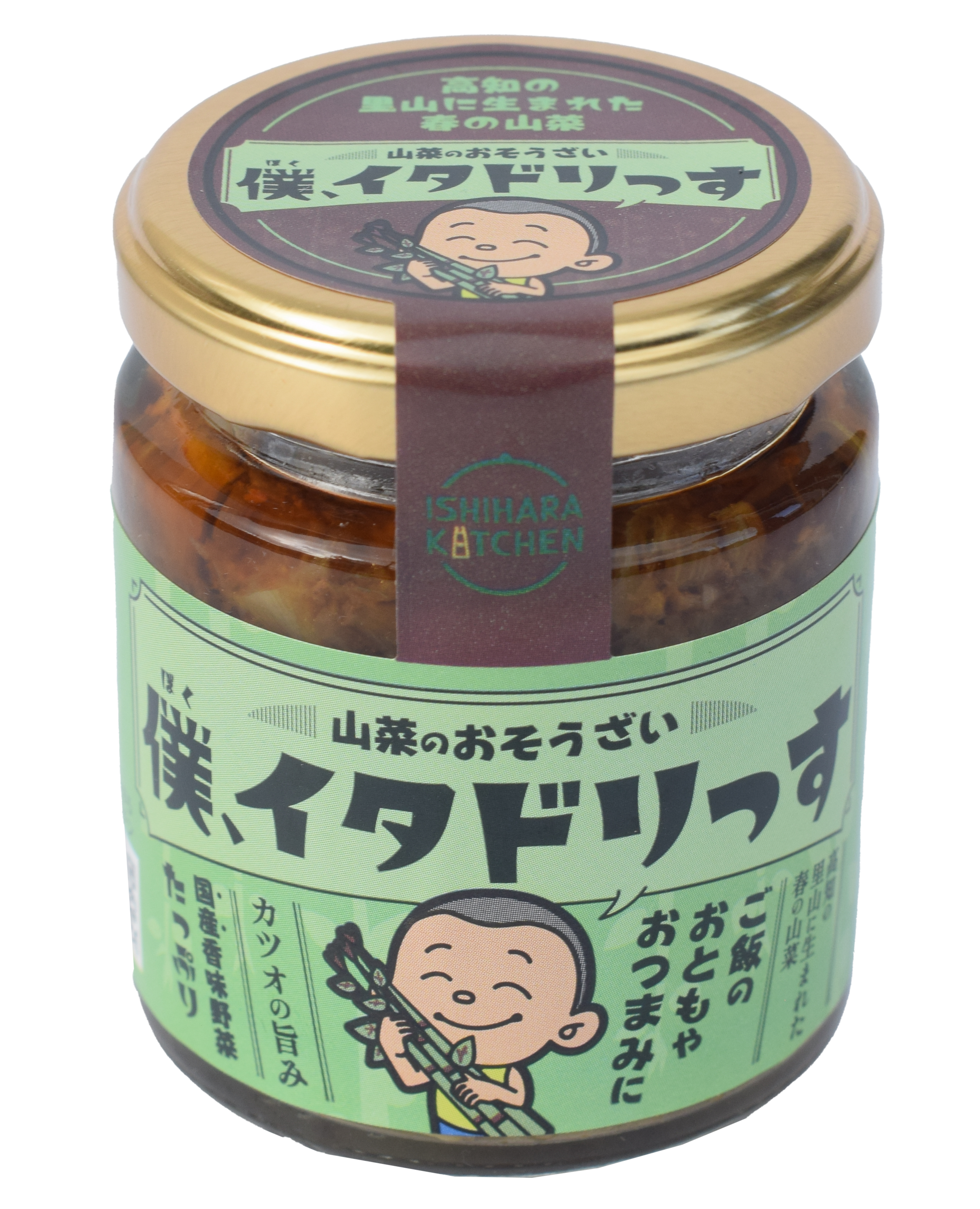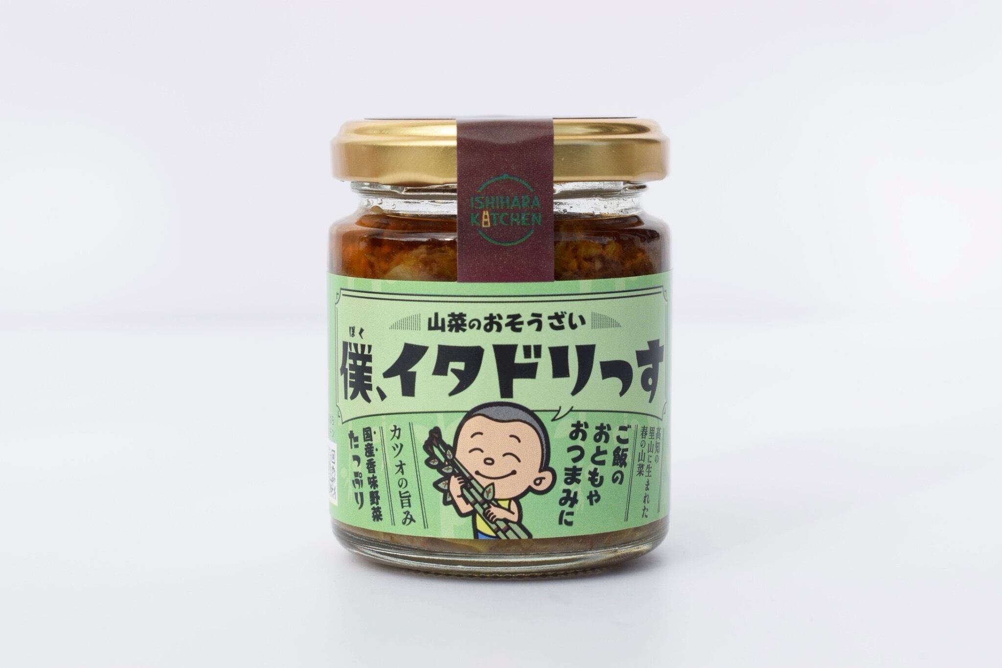 高知県民のソウルフードである、山菜「イタドリ」をたっぷりつかったお惣菜。高知県産のカツオの旨みと国産香味野菜の香りがクセになる味です。うま味調味料や保存料は使用していません。そのまま食べていただいてもよいですし、ご飯のおともにもなりますし、お豆腐と一緒に食べても美味しいです。高知家のうまいもの大賞2026 新商品賞を受賞。高知自慢のイッピンです! 内容量:90g